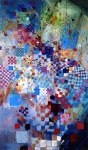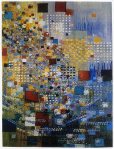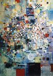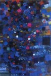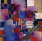 Music is for me a necessity for living. Classical jazz and other strains. The making of the emotional and mental stimulus of sound patterns into visual patterns is the basis of this body of work. Parallels and passages which entwine in an interaction of sound and vision; each colour a different instrument; translations into visual imagery. A flurry of yellow ochre squares, dashing sometimes off the beat, and carefully painted. Deep ultramarine, smudgy—interspersed and below – a response to a concerto.